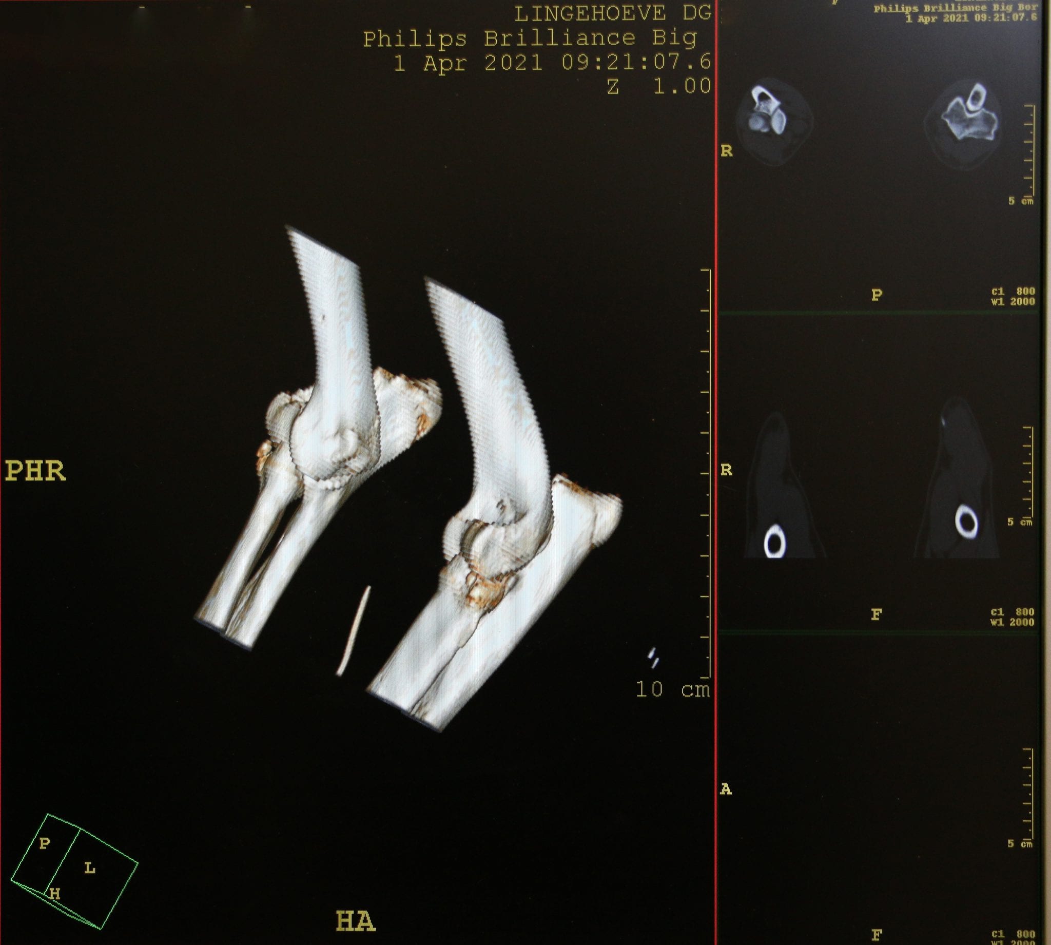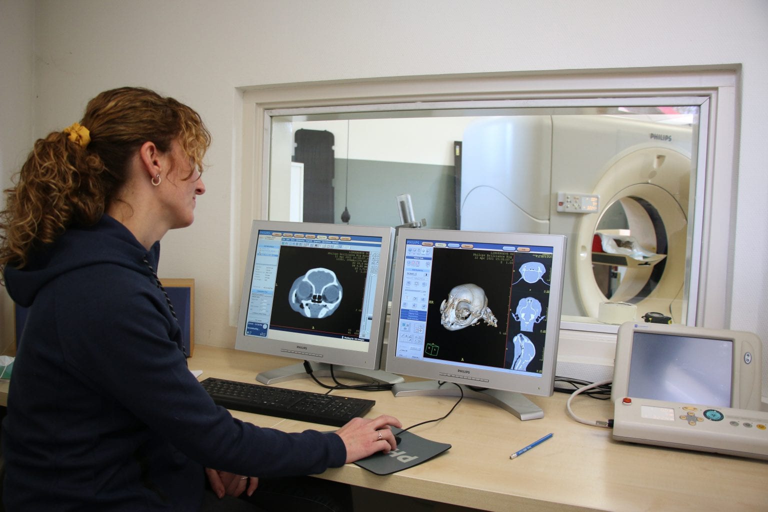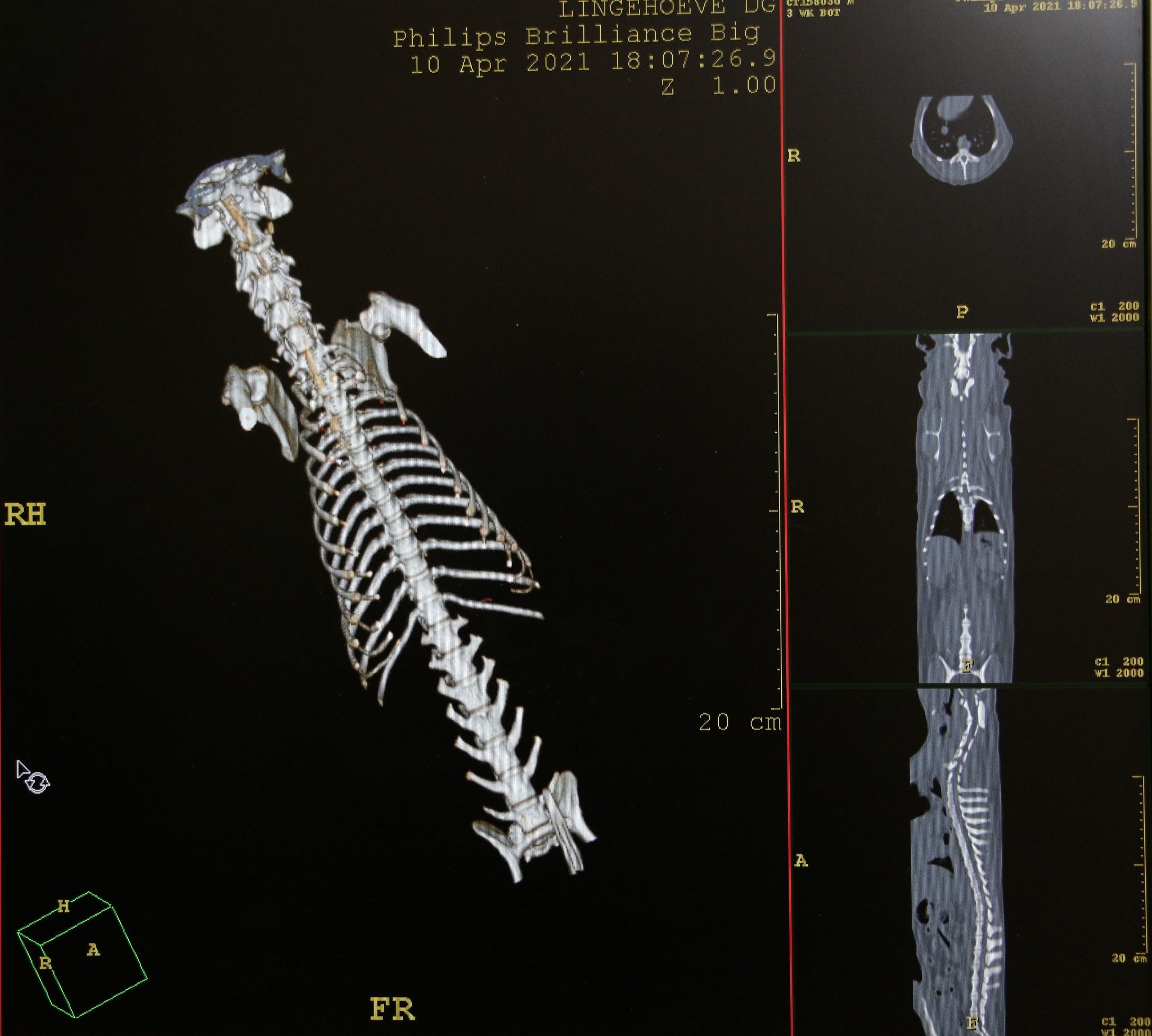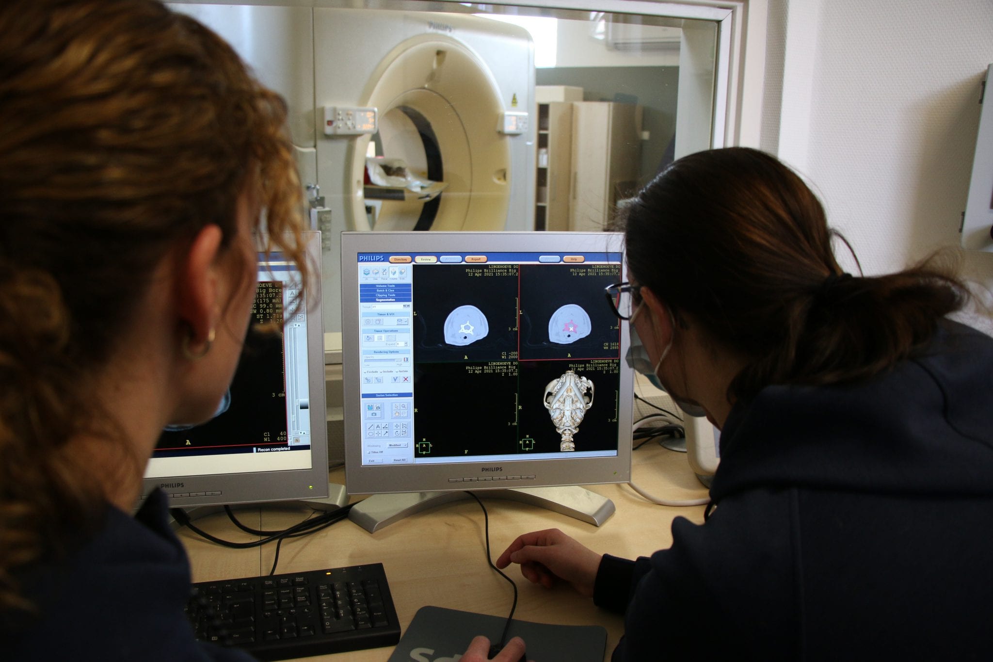 Een beter alternatief is de CT scan. Hierop is het ruggenmerg zelf weliswaar niet zichtbaar, maar wel de uitpuiling van de hernia die drukt op het ruggenmerg. Voor zowel CT als MRI geldt dat het dier een lichte narcose moet krijgen. Het inspuiten van contrastmiddel in een bloedvat wordt bij beide technieken vaak toegepast om nog beter in beeld te brengen wat het probleem is.